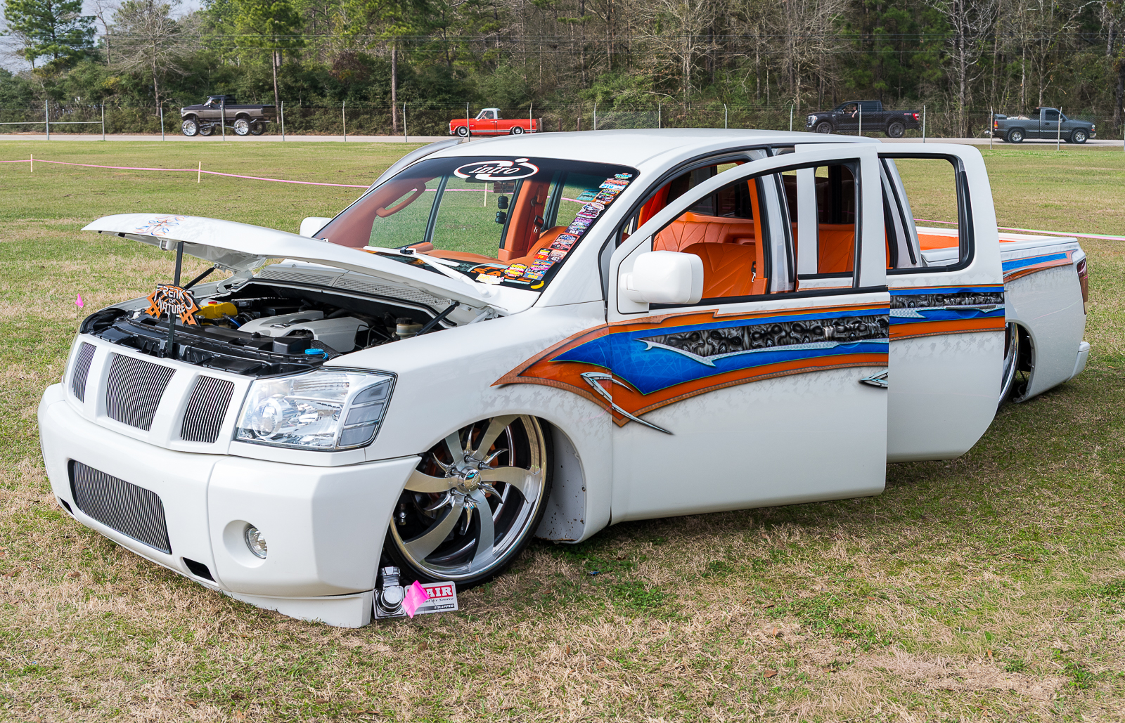 Z63_3763.jpg Specialty Award Winners Pickle Memorial Award Entry #R247 — Dominic Cortez — San Antonio, TX — 2011 Ford F350 Greg Miller Memorial Award Entry #R1598 — Luiz Vasquez — Tulare, CA — 1972 Chevrolet C10 Josh Coleman Memorial Award Entry #R1476 — Carlos Zapata — Pearland, TX — 1972 Chevrolet C10 Nc Memorial Award Entry #R1397 — John Vradenburg — Brooksville, FL — 1994 Nissan Hardbody Airlift Choice Entry #R2073 — Christerfer Pate (Mobile Toys Inc) — College Station, TX — 1997 Chevrolet Tahoe Allout Offroad Choice Entry #R2261 — Nate Scrivner (American Force) — Eldon, MO — 2024 Ford F350 American Force Choice Entry #R566 — Travis Hellewell — San Luis Obispo, CA — 1949 Chevrolet 3100 Kicker Choice Entry #R2171 — Paul Rutledge (Complete Performance) — Jasper, TX — 1972 Ford F350 Mti Choice Entry #R1422 — Jason Watts — Liberty Hill, TX — 1996 Gmc Sierra 1500 Pse Choice Entry #R1495 — Charlie Morris — Brenham, TX — 1971 Ford F100 Raceline Choice Entry #R2094 — Terrence Potter (Raceline Wheels) — Houston, TX — 1957 Chevrolet C10 Renegade Products Choice Entry #R2024 — Rikki Bell (Bodyguard Bumpers) — Paris, TX — 2024 Ford F250 Platinum Hard Luck Entry #R496 — Eddie Gordy Jr — Germanton, NC — 1991 Mazda B2200 Longest Distance Entry #R1062 — Earnie Reddic — Marysville, WA — 2015 Gmc Sierra 1500 Kids Choice Entry #R447 — David Ginter — Katy, TX — 2018 Ford F-450 Ladies Choice Entry #R2222 — Sirena Vecellio (Renegade) — Pueblo, CO — 1977 Ford F150 Police Officers Choice Entry #R274 — Daniel Cumby — Santa Fe, TX — 2016 Ford F150 Best Club Team Billet Best Undercarriage Entry #R2179 — Dwayne Manns (Plan B Fab) — Sorrento, FL — 1987 Chevrolet 3500 Best Engine Entry #R1330 — Ken Tilton — Glendale, AZ — 1970 Chevrolet C10 Best Interior Entry #R2076 — Mike Lau (Mobile Toys Inc) — College Station, TX — 1970 Chevrolet C10 Best Paint Entry #R404 — Marlon Fuselier — Lake Charles, LA — 1955 Chevrolet 3100 Pickup Truck Best Graphics Entry #R1069 — Patrick Reid — San Leon, TX — 2008 Ford Ranger Best Female Owned Entry #R1260 — Carolyn Sonnier — New Caney, TX — 1959 Chevrolet Apache Best 25yrs Old And Under Entry #R262 — Keegan Craighead — Salem, VA — 1988 Mitsubishi Mighty Max Best Under Construction Entry #R287 — Jason Danos — Raceland, LA — 1964 Ford F 100 Best Engineered Entry #R2204 — Dustin Sterling (Mti) — College Station, TX — 1968 Chevy C10 Best Bike Entry #R253 — Darin Cottrell — Mcallen, TX — 2014 Harley Davidson Street Glide Best Tow Pig Entry #R642 — Robert Jenkins — Blue Springs, MO — 1987 Freightliner Cor Best Lowrider Entry #R957 — Adam Ochoa — Spring, TX — 1968 Lincoln Continental Best Import Car Entry #R604 — Scott Hopkins — Hiram, GA — 1956 Volkswagen Beetle Elite 5 Lifted Entry #R2121 — Bryan Summers (Plan B Fab) — Sorrento, FL — 1965 Ford F100 Elite 5 Lifted Entry #R620 — Mike Hunt — Cypress Tx, TX — 2024 Ford F250 Elite 5 Lifted Entry #R2225 — Danny Derasmo (Jtx) — Bronx, NY — 1951 Dodge Power Wagon Elite 5 Lifted Entry #R1425 — Rick Waychoff — St Johns, FL — 2024 Ford F350 Elite 5 Lifted Entry #R2119 — Stephanie York (Plan B Fab) — Sorrento, FL — 2024 Ford Bronco Top 10 Minitruck Entry #R1397 — John Vradenburg — Brooksville, FL — 1994 Nissan Hardbody Top 10 Minitruck Entry #R95 — Steven Bell — Dayton, TX — 1995 Chevrolet S10 Top 10 Minitruck Entry #R873 — Smiley Mikeska — Hockley, TX — 1991 Toyota Pu Top 10 Minitruck Entry #R213 — Keith Chandler — Sallisaw, OK — 1992 Mazda B2600i Top 10 Minitruck Entry #R2271 — John Juarez (Chassis Fab) — Tomball, TX — 2000 Chevrolet S10 Top 10 Minitruck Entry #R897 — Heather Montgomery — Canton, GA — 1992 Nissan Hardbody Top 10 Minitruck Entry #R1051 — Deven Ramsey — Wichita, KS — 2004 Toyota Tacoma Top 10 Minitruck Entry #R1383 — Jonathon Verret — Lake Charles, LA — 1996 Toyota Tacoma Top 10 Minitruck Entry #R364 — Shane Evans — Seguin, TX — 2003 Nissan Frontier Top 10 Minitruck Entry #R157 — Daniel Brummett — Forney, TX — 2013 Toyota Tacoma Promoters Choice Entry #R1134 — Terry Rose — Mount Juliet, TN — 1959 Chevrolet Suburban Best Debut Entry #R2239 — Scott Luscombe (Mti) — Mont Belvieu, TX — 1985 Chevrolet K10 Best Suv Entry #R2073 — Christerfer Pate (Mobile Toys Inc) — College Station, TX — 1997 Chevrolet Tahoe Best American Car Entry #R2047 — Jake Mckiddie (Lonnie) — Choctaw, OK — 1961 Cadillac Coupe De Ville Best Classic Car Entry #R1252 — Robert Smith — Pinehurst, TX — 1967 Chevrolet Nova Best Classic Truck Entry #R496 — Eddie Gordy Jr — Germanton, NC — 1991 Mazda B2200 Best Full Size Entry #R2014 — Larry Gloria (Tre 5 Customs) — Plainview, TX — 1972 Chevrolet C10