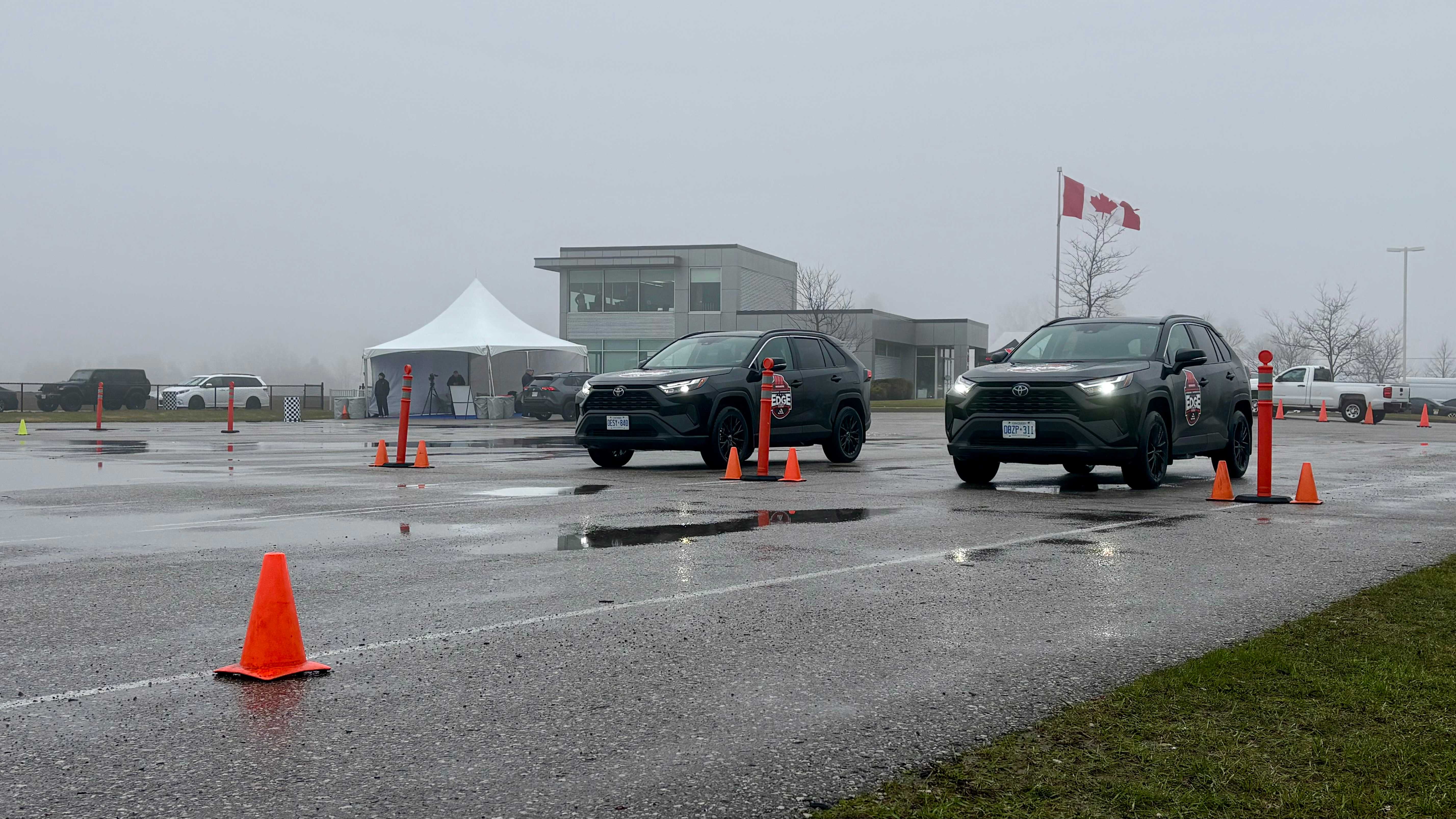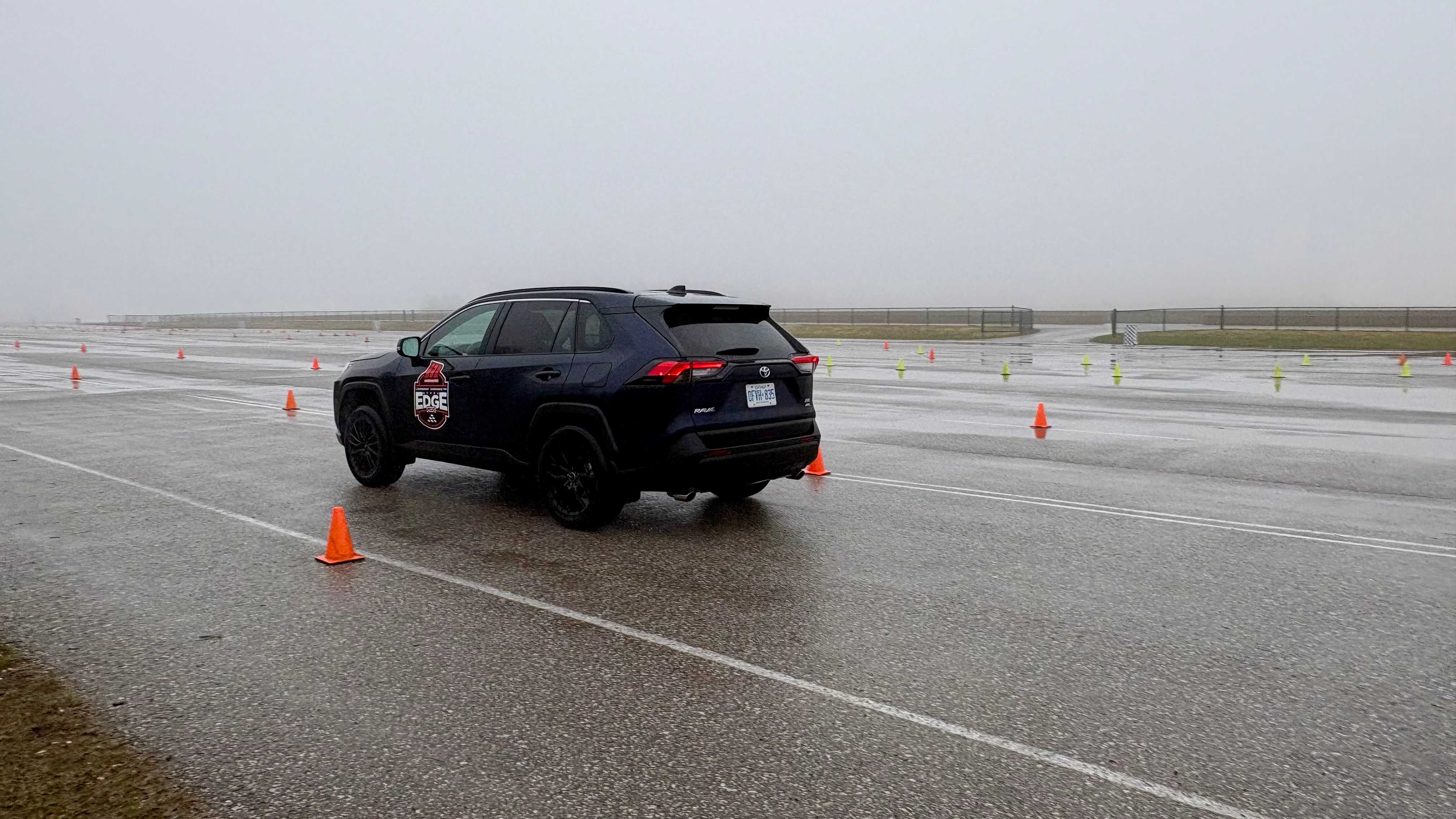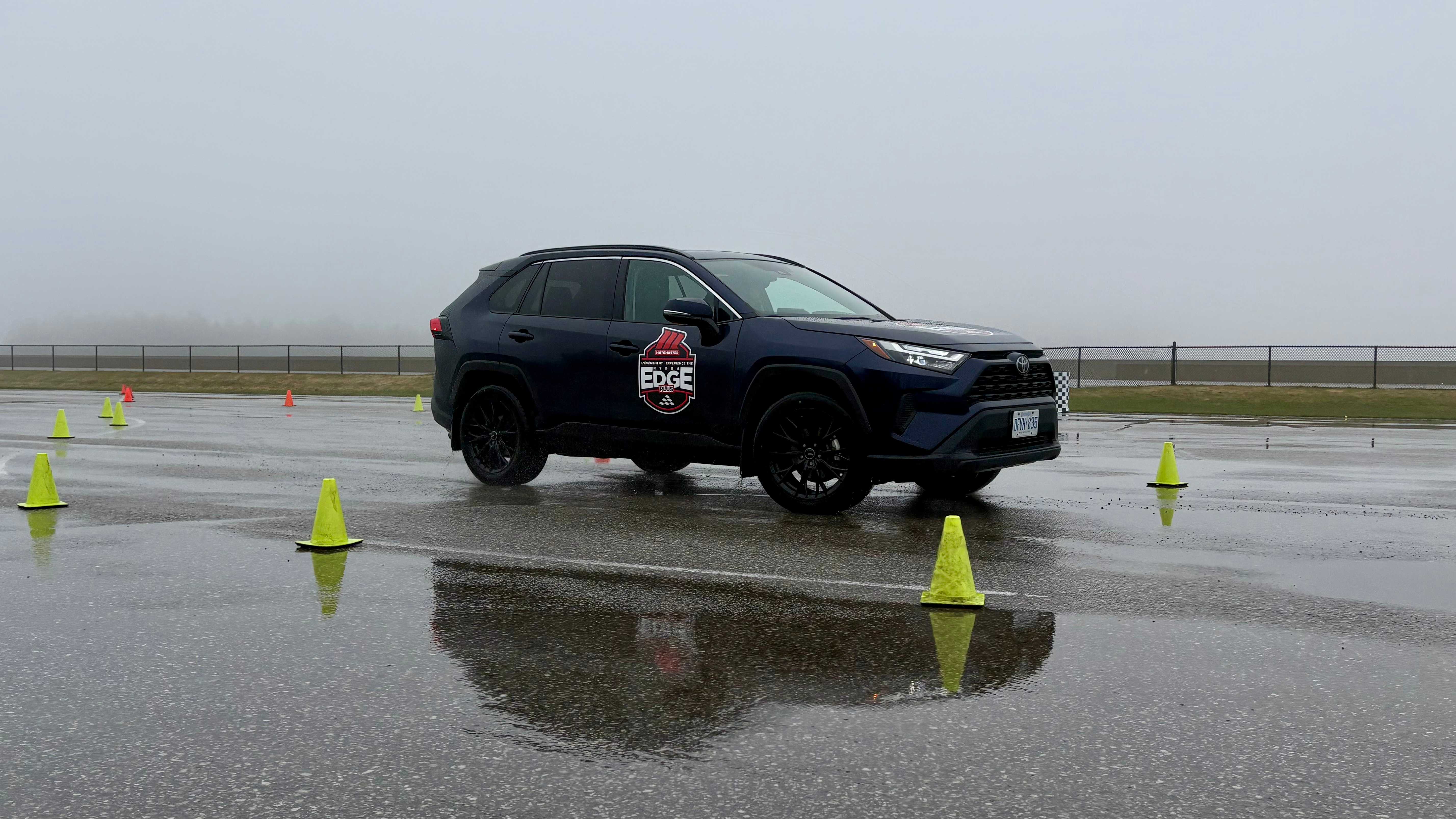 We tested the Hydra Edge Plus on several Toyota RAV4s on public roads and a closed course. The public roads were two-lane country variety mostly, with some brief highway in the mix. The close course was an autocross setup that tested wet braking, wet grip, and wet handling. All test sessions were conducted in wet conditions. Road driving occurred in heavy rain.