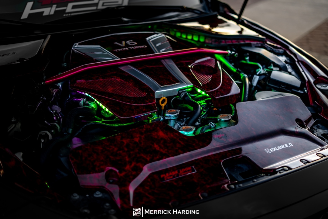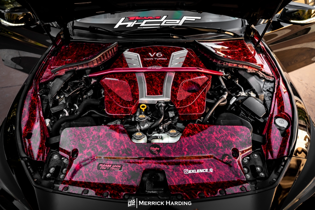 Hydro dipped red marble engine bay trim